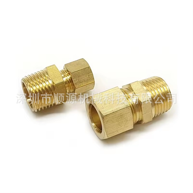 真鍮ストレートジョイントダブルカードカバージョイント銅カードカバージョイント1/4NPT-3/16OD外歯銅カードカバーコネクタ