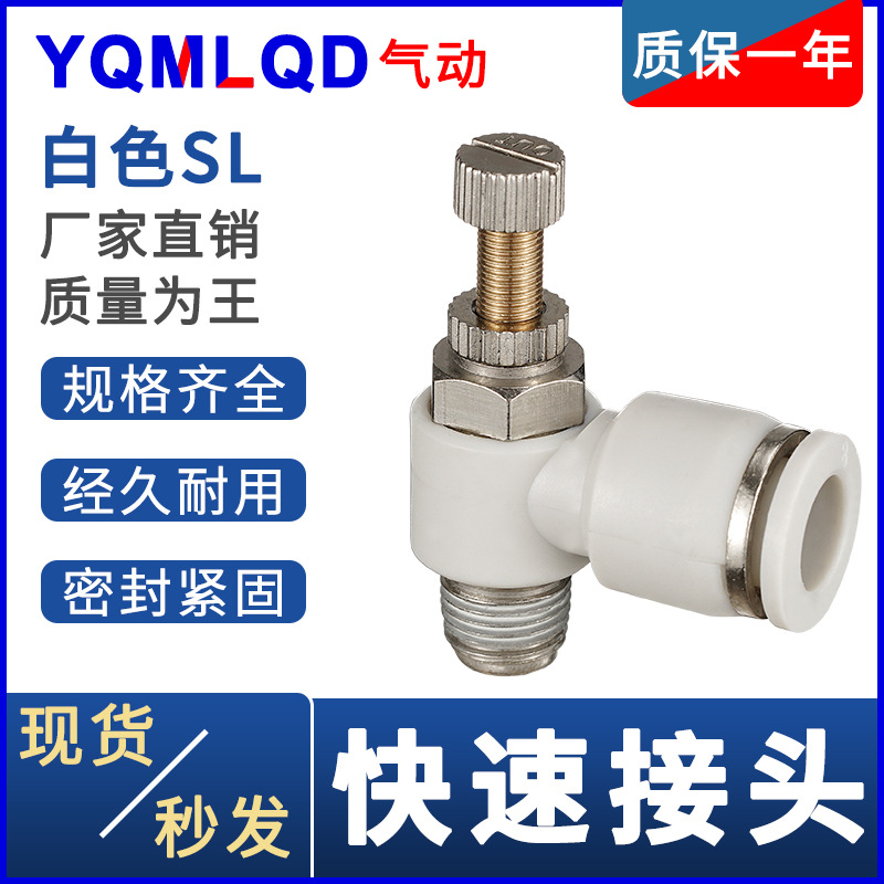 白色銅気動スロットルバルブ気動ジョイントSL8-02/SL6-01調速調節可能l型ジョイント単方向排気