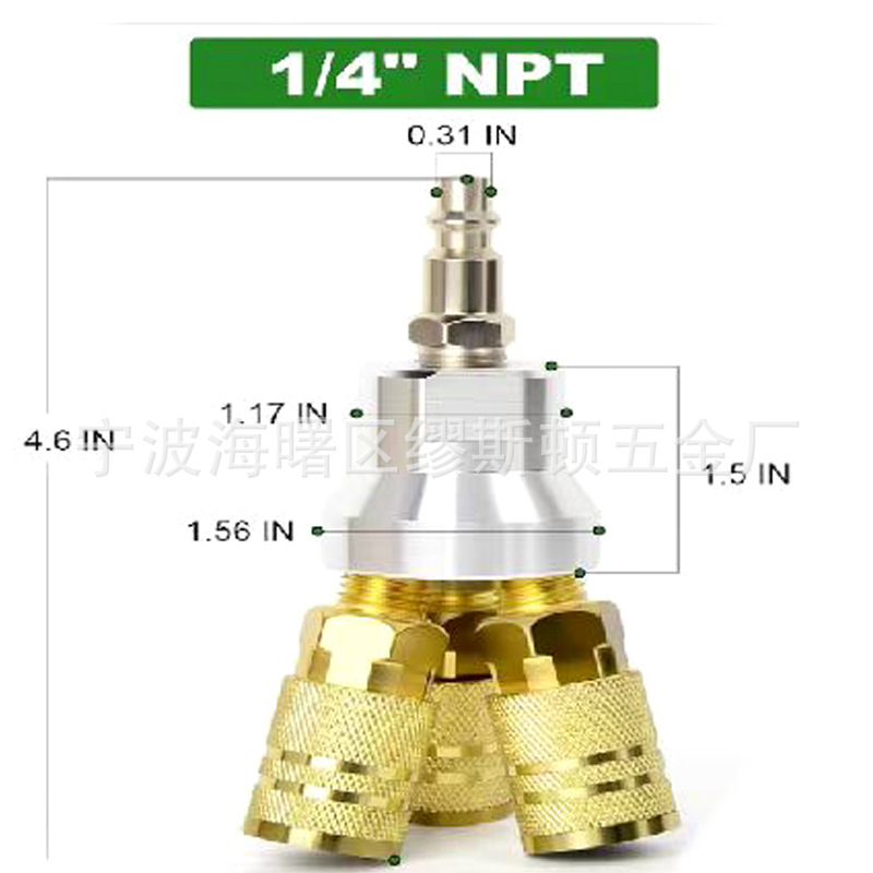 アメリカ式1/4npt丸三方クイックジョイント真鍮アメリカ式気管エアジョイントメス雄頭外ねじ