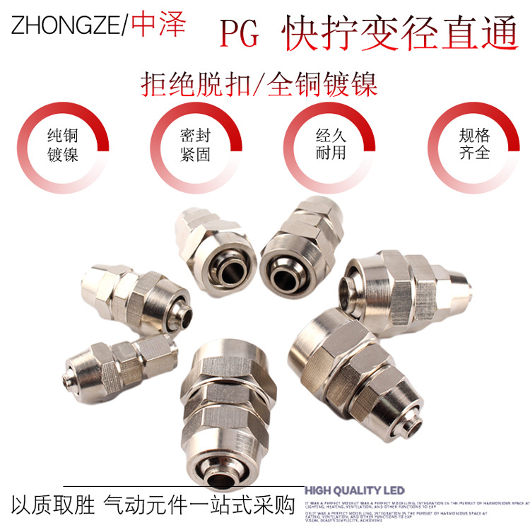 Pgストレート変径クイックねじり継手銅メッキニッケルロック母型10-8/6-4/12-10/16エア配管継手