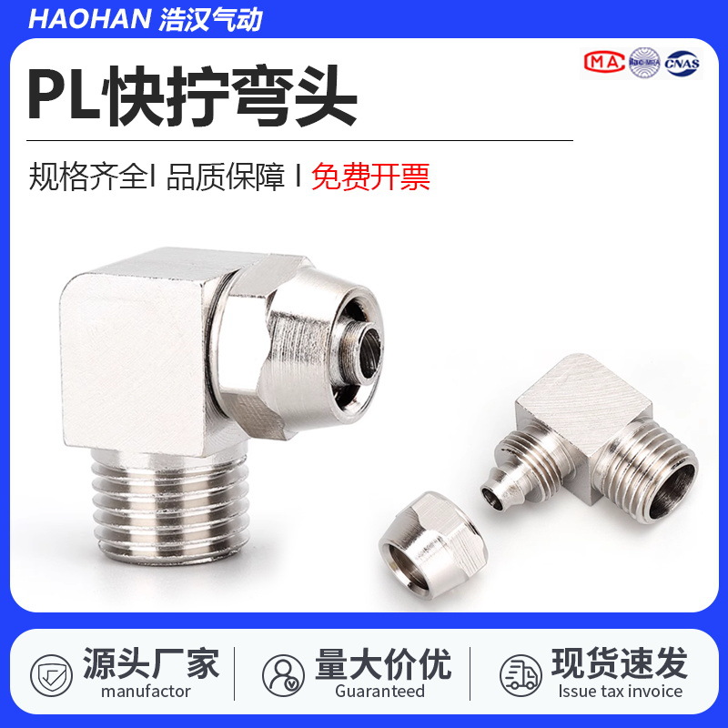 エア継手銅メッキニッケルクイックねじ継手kll/PL8-02直角エルボPL6-01 10-03 12-04