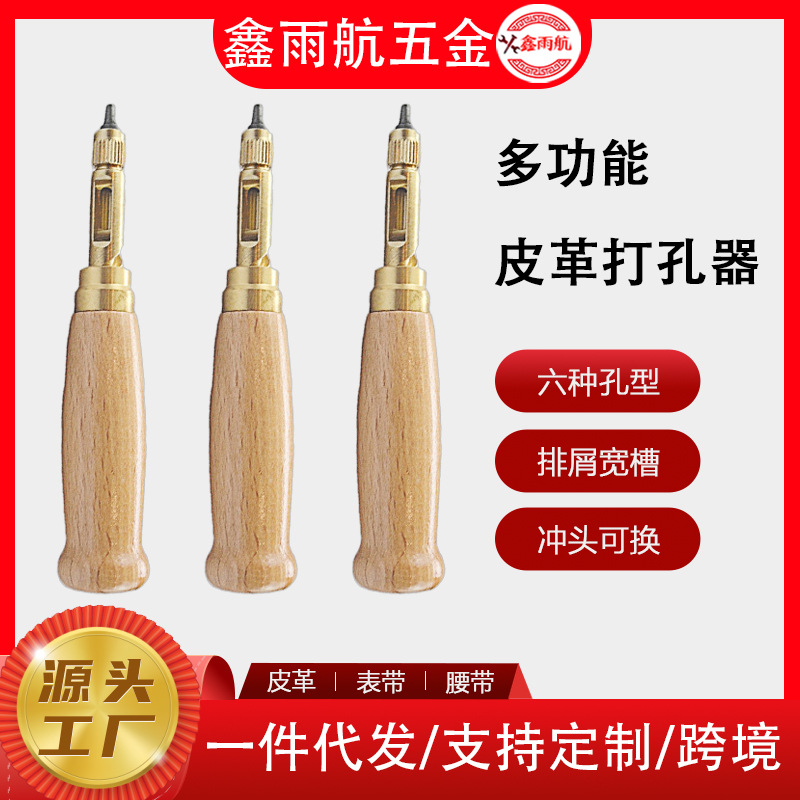 自動ベルト穴あけパンチ交換式多頭DIY革穴あけ器回転パンチ6点セット工場直送