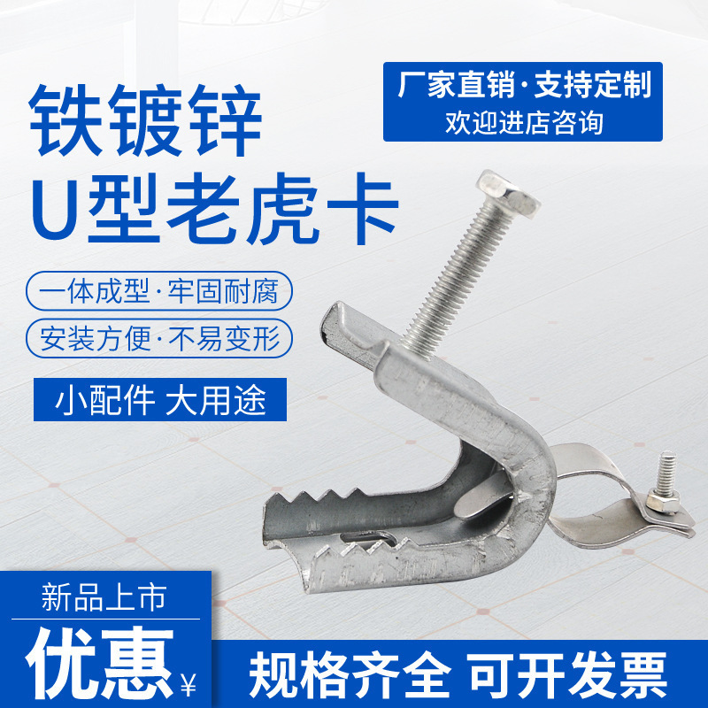 U字型タイガークリップ 鉄亜鉛メッキ角型タイガークリップ スチールスロットクリップ C型鋼タイガー口クリップ タイガー歯チューブクリップのフルセット