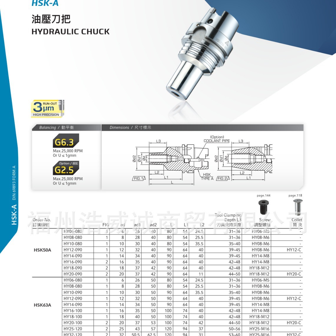 油圧シャンクHSK63A-HY20-100