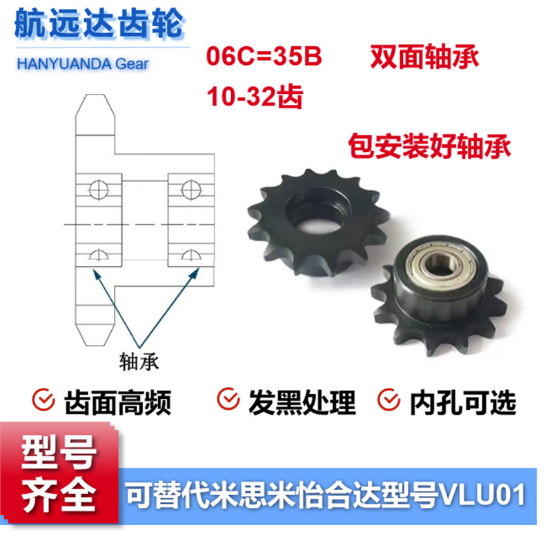 35B06C 単列スプロケットアイドラーホイール 14 歯 15 歯 19 歯 20 歯テンショナーホイール Yiheda VLU01 両面ベアリング