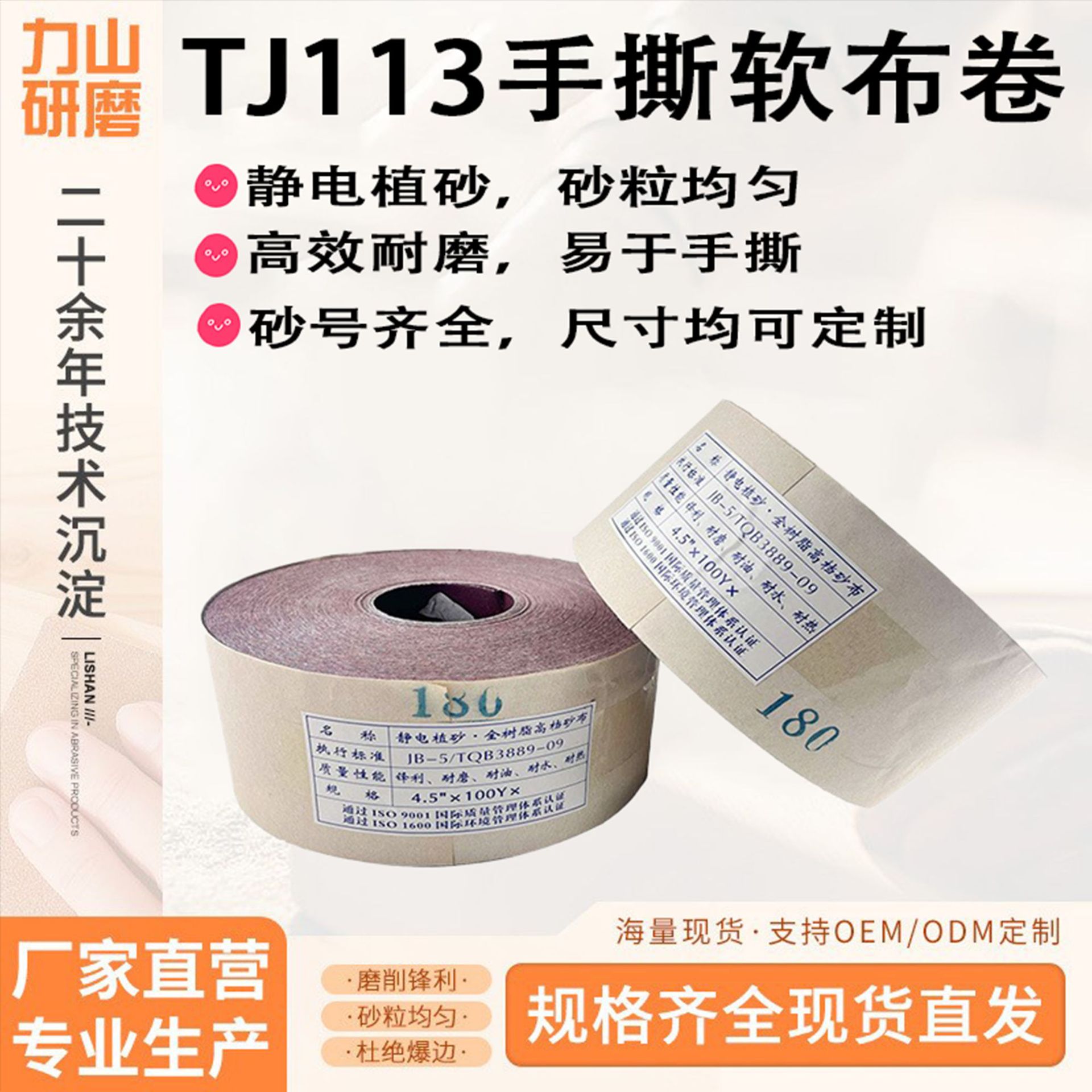 手引き砂布木工砂皮金属植毛ソフト布巻JB-5砂布巻600目研磨砂紙研磨