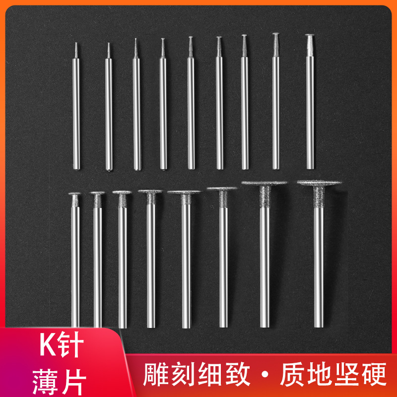 K針シート釘頭金剛砂玉彫刻研削ヘッドt型研削針翡翠原石皮むき窓研削ヘッド彫刻針