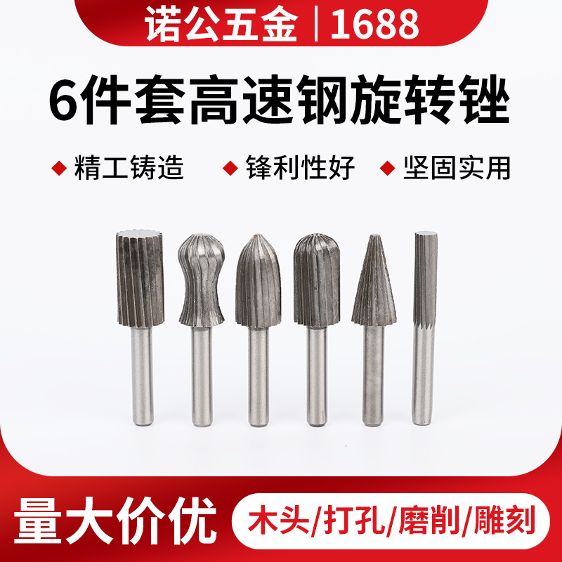 高速鋼回転やすり6点セット木工木彫り根彫刻金属研磨ヘッドフライス工具高速鋼回転やすり