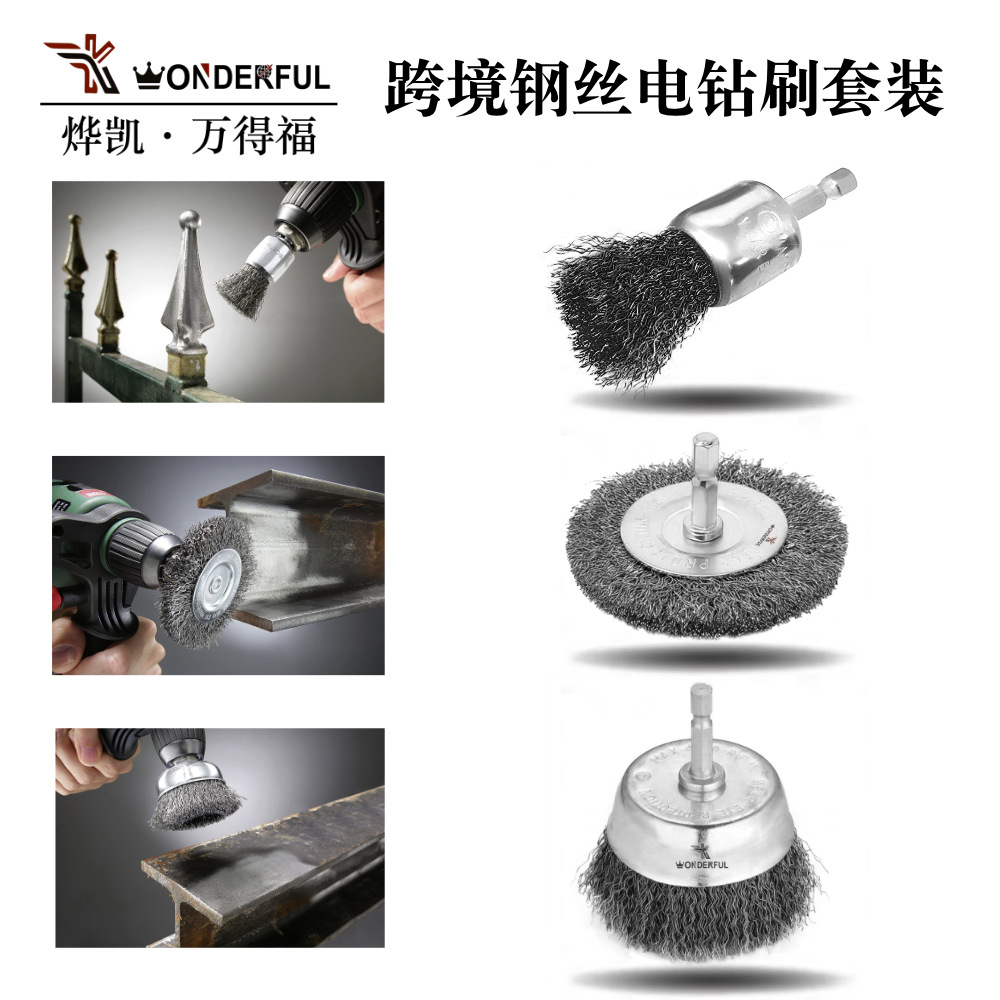 ステンレス鋼線研磨ホイール、錆取り銅線、ハンドル付き鋼線ブラシ、硬い線研磨、5点セット、鋼線ホイール、クロスボーダーカスタマイズ