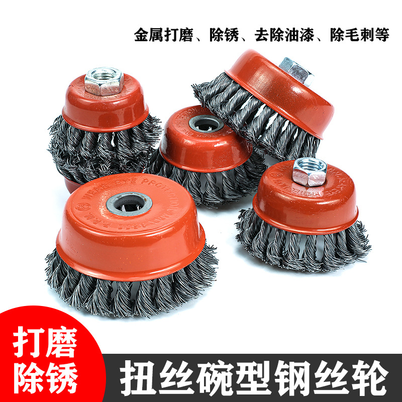 メーカー卸売り125型ボウル型ワイヤーブラシバリ取り研磨除錆サンダ鋼球通用ワイヤーホイール