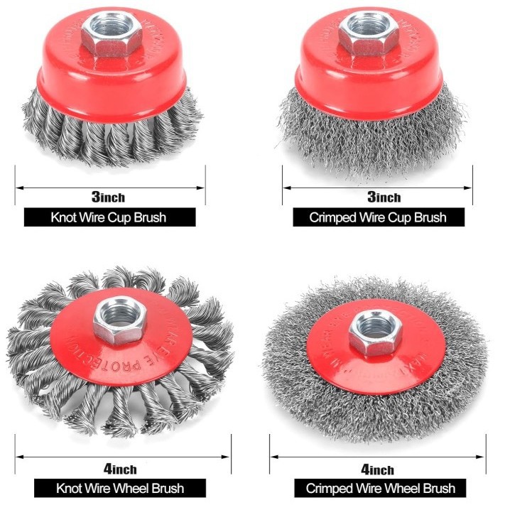 クロスボーダー 4/6PC ツイスト 5/8-11 ネジワイヤーブラシ 3inch ボウル型 + 4inch ポット型ワイヤーホイールサビ取りブラシセット