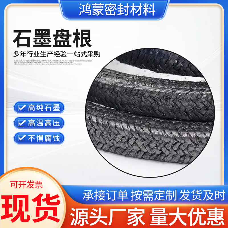 フレキシブル黒鉛盤根高圧耐高温純黒鉛盤根金属線銅線ニッケル線黒鉛盤根シール
