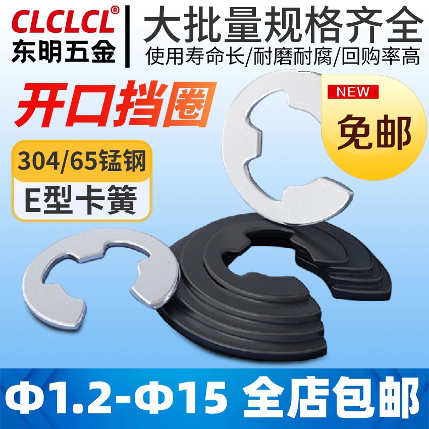 304ステンレスE型オープンスプリング鉄黒リングe型スプリング止めリングバックルM1.2M1.5M2M3-M15
