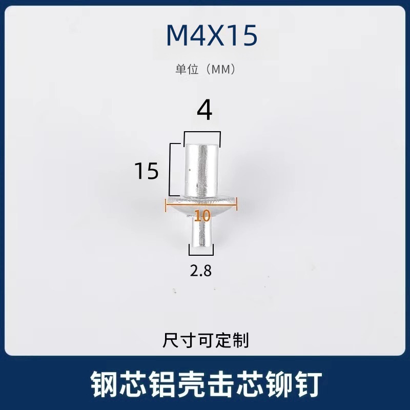 Xingjia は M4X15 ステンレス鋼コア アルミニウム シェル コア リベット フラット丸頭パーカッション拡張アルミニウム半丸頭リベットを選択します。
