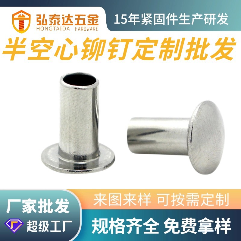 子母リベット、非標準カスタム半中空リベット、接続部品、銅、鉄、アルミニウム、ソリッド丸頭冷間圧造ステンレスリベット