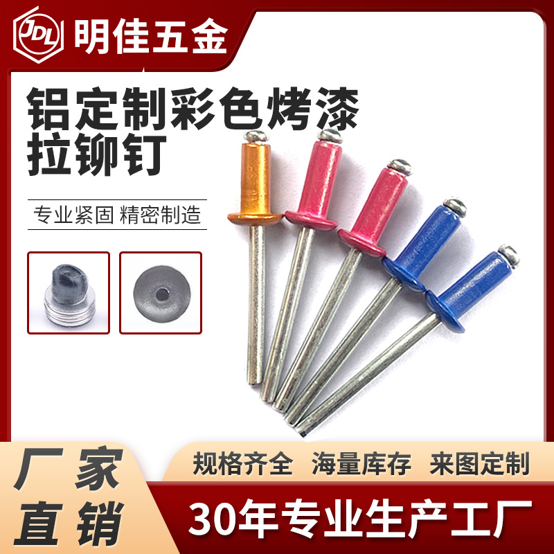 カスタムカラー釘焼きアルミ釘プラチナグレー赤黒抜芯リベット丸頭皿アルミリベット工場
