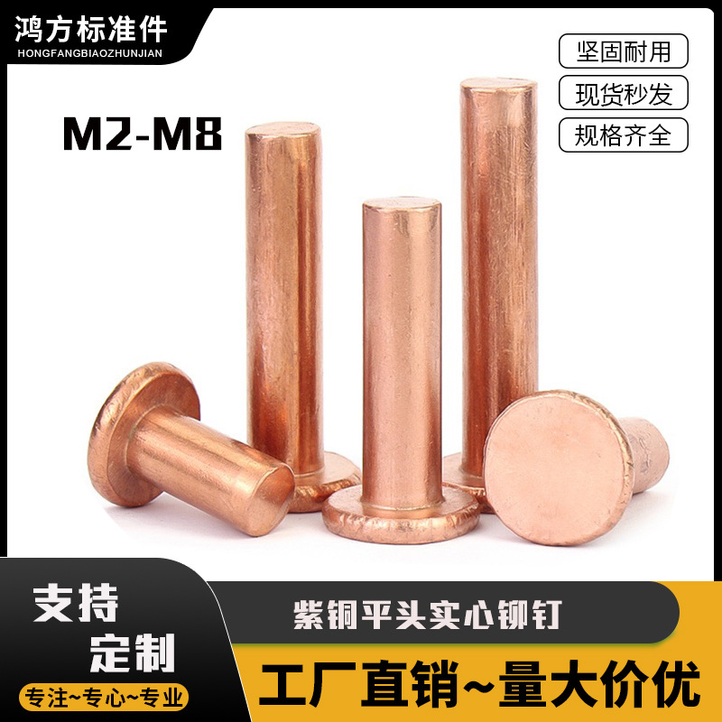 紫銅平頭中実リベットgb109 m 2m 2.5m 3m 4m 5m 6m 8叩き式紫銅リベット平帽子銅釘