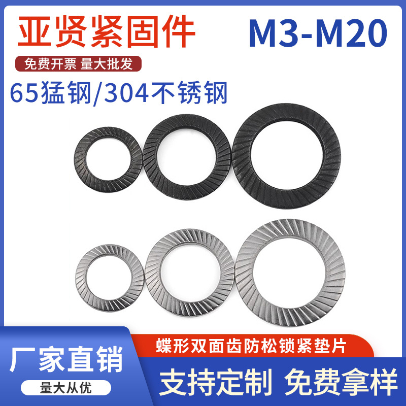 マンガン鋼/304ステンレス両面歯ワッシャー緩み止めワッシャー滑り止めワッシャーバタフライロックワッシャー