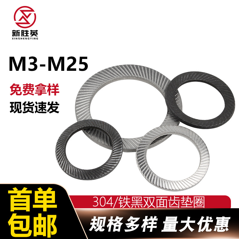 304ステンレス二重自動ロックワッシャー滑り止め防松ワッシャー両面二重積層歯パッド卸売り