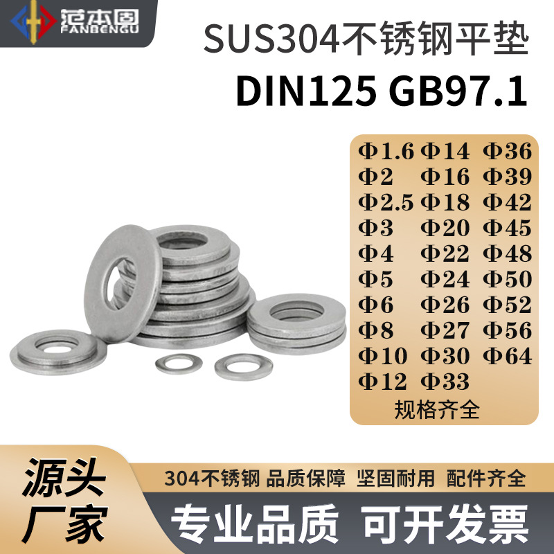 304ステンレス金属平座金din125平介子締め付け滑り止め防錆増厚平座金 Φ7