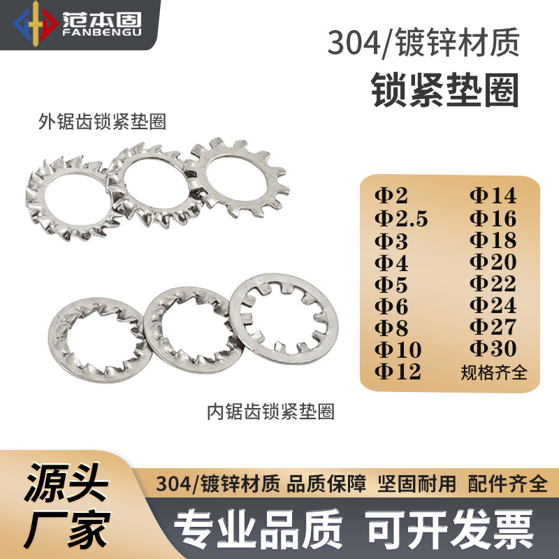 内鋸歯ロックワッシャー外鋸歯ロックワッシャー多歯防松ワッシャー304ステンレス青白亜鉛