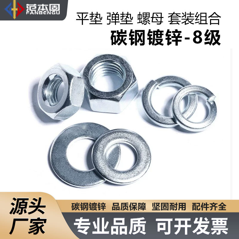 炭素鋼亜鉛メッキ8級平弾母三組合せ平パッド + 弾パッド + 六角ナットgb97 + gb93 + gb6170