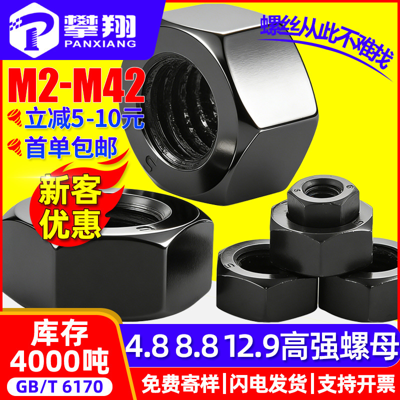 12.9/8.8級高強度ナット 黒色六角ナット 黒色六面ナット ネジキャップ M6M8M10M20