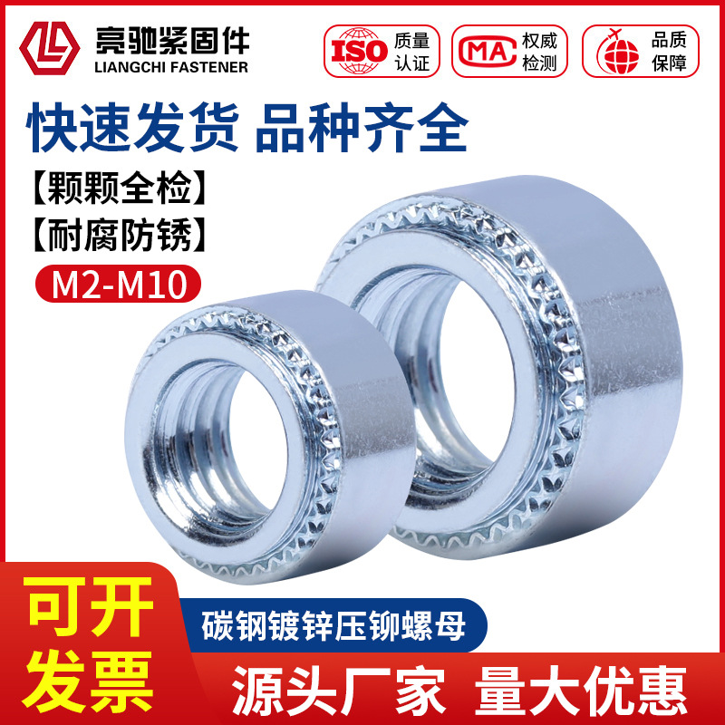 卸売亜鉛メッキリベットナットプレッシャーナットS炭素鋼カシメボルトm2 m3m45m m6m8m10