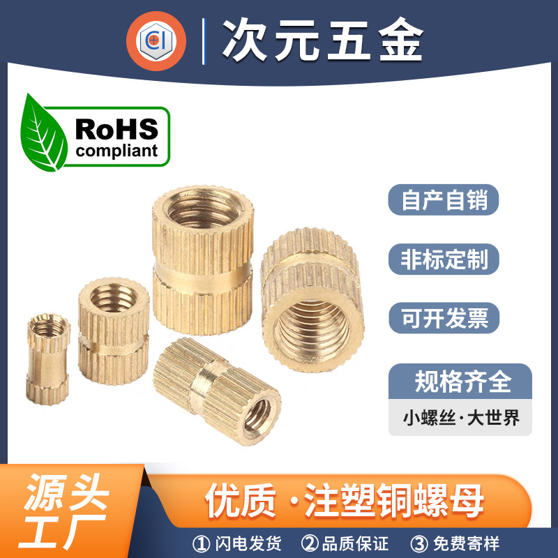 土八熱溶融銅ナット現物卸売り双綾射出銅インサートナットM1-M10携帯電話銅ナット