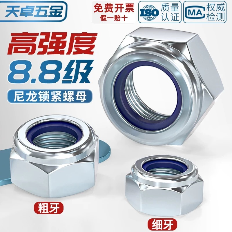亜鉛メッキナイロンセルフロックナット細歯緩み防止ロックナットM8M10M14M16M20mm * 1*1.5
