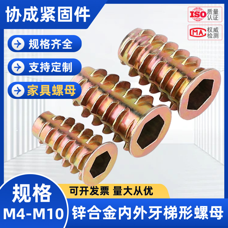 卸売り内外歯ナット沈頭内六角家具ナット実木埋込部品台形ねじ帽m4 m 5m 6m 8