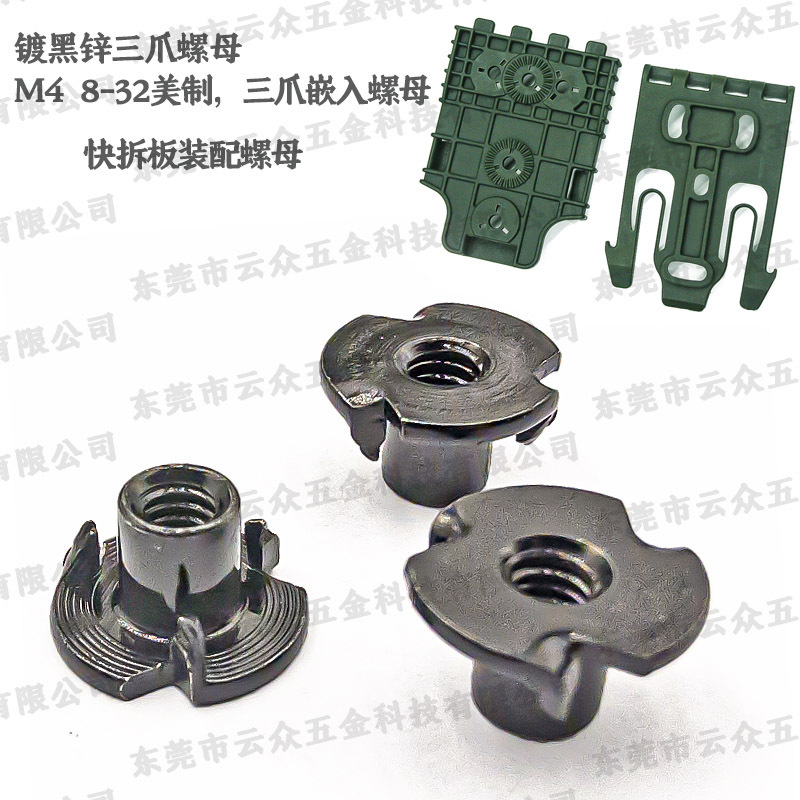 アメリカ製8-32三爪ナット ソファ用リランクイックリリースプレート組立用三爪ナット ダークブラック三爪インレイナットM4