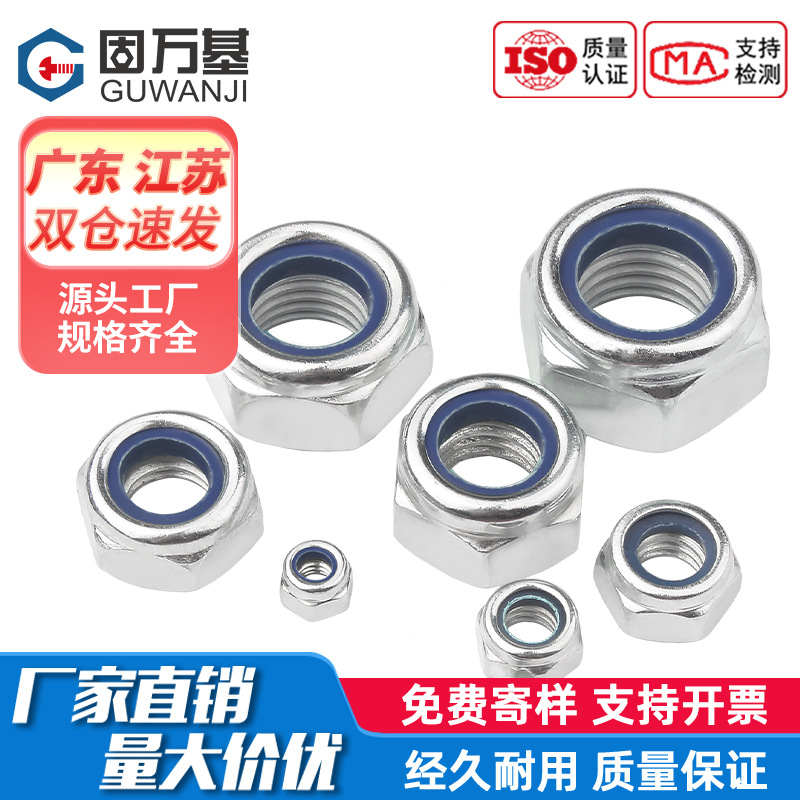 鉄白亜鉛フランジナイロンマット付き緩め防止六角ナット滑り止めロックナット国標m4 m 5m 6m 8
