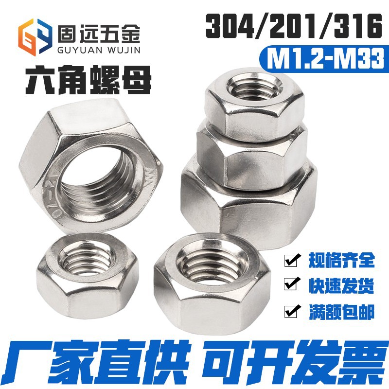 201/304/316ステンレス六角ナットナットナットDIN934ネジキャップm2 4m 5m 6m 8m 33熱売