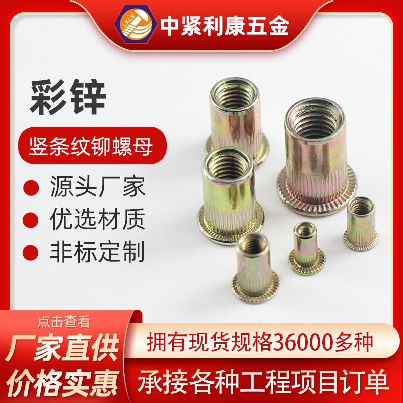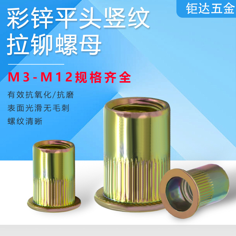 カラー亜鉛プルリベットナットM3-M12平頭縦紋リベットナット炭素鋼カラー亜鉛プルキャップ