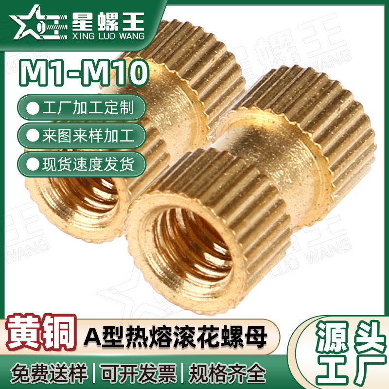 A型貫通孔ロールホットメルト銅ナット射出銅ナット内インサートナット卸売りM2/M2.5/M3/M4