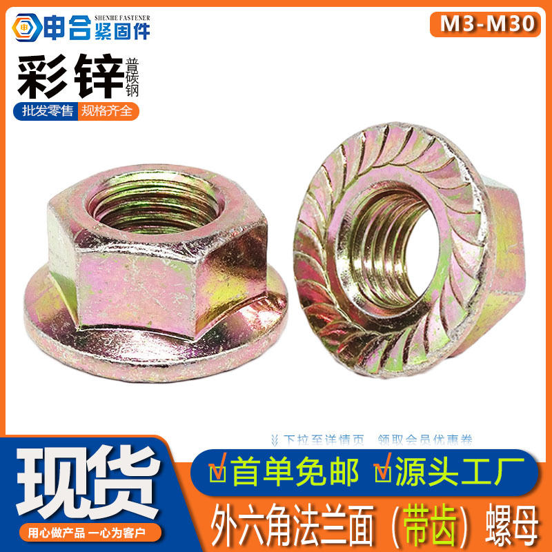 4段六角フランジ面歯付きナットエンボス六角ヘッドフランジ花歯ナットカラー亜铅フランジ滑り止めナット