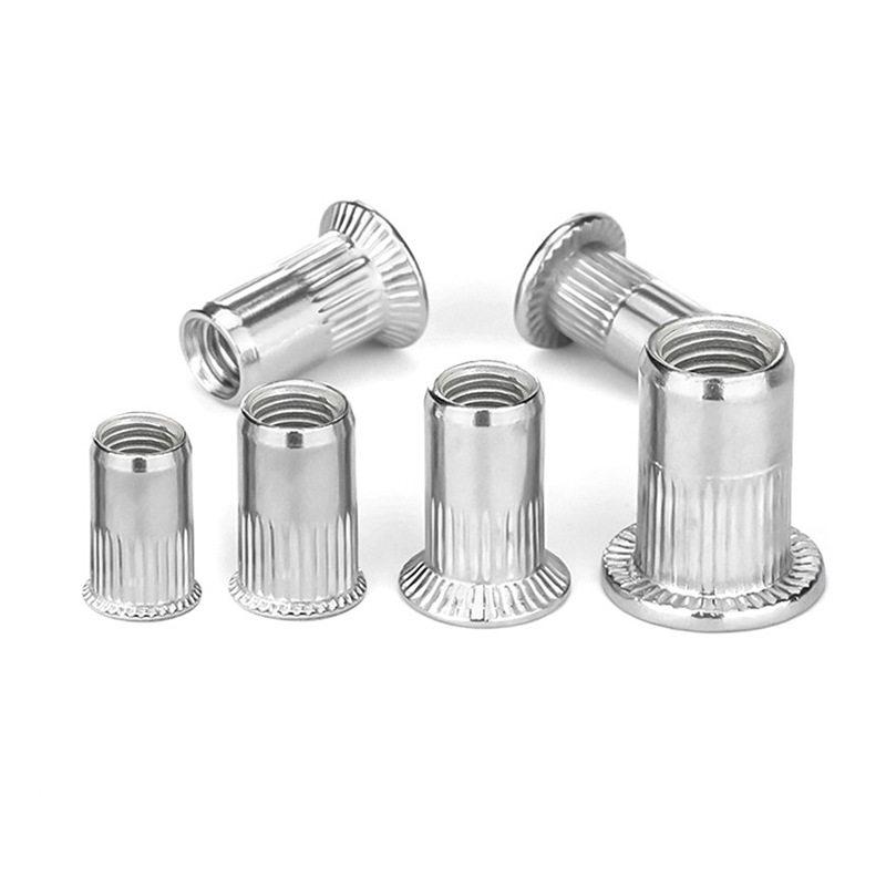 304ステンレスプルリベットナット平頭縦紋ロール花インチリベットナット通孔引き母引きM3-M12