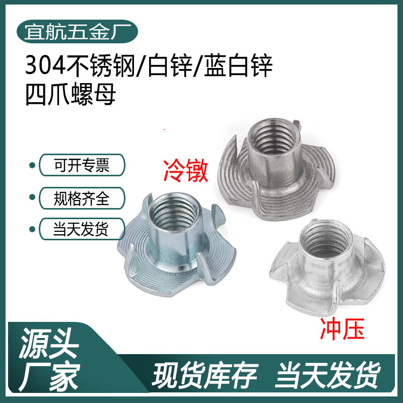 冷間据え込み/プレス家具ナット爪形スピーカー板モザイク爪形304ステンレス/亜鉛メッキ四爪ナット