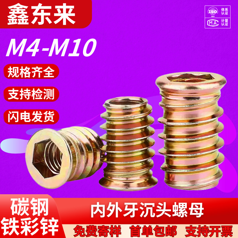 鉄カラー亜鉛帯介内外歯ナット内六角沈頭埋込家具ねじリンク部品M4-M10