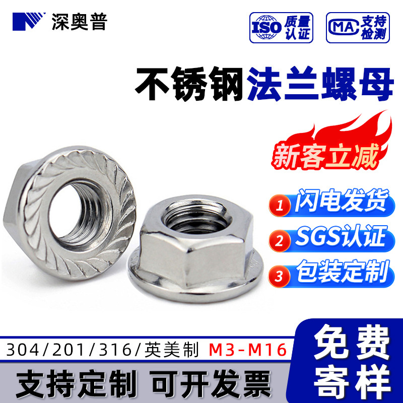 201/304/316ステンレスフランジナット六角滑り止め歯付きマット付き緩み防止ナットm3m4 m 5m 6