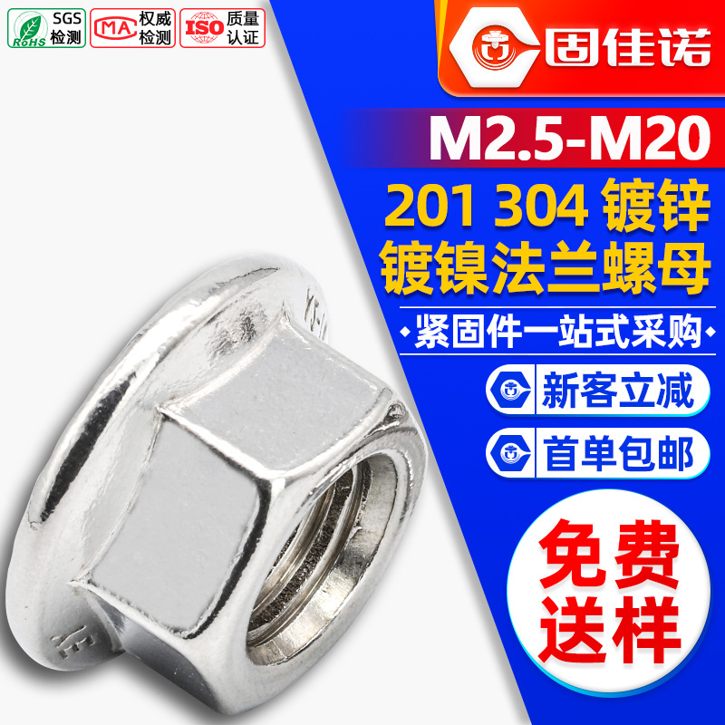 304ステンレス鋼六角フランジナット亜鉛メッキフランジ面六角ナットニッケルメッキネジキャップM3M5M6M8M10