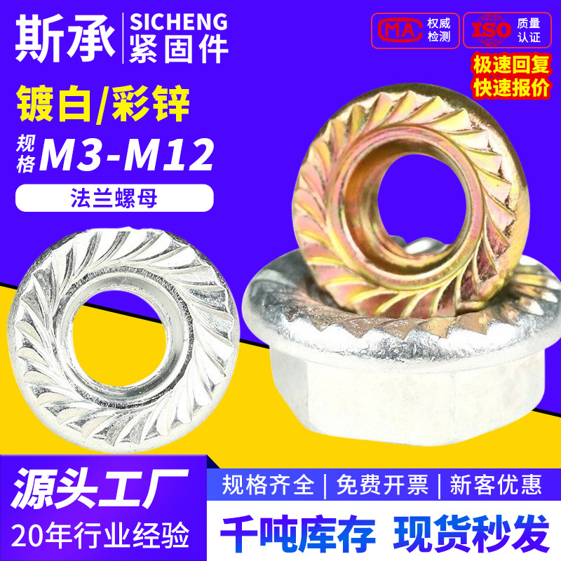 メーカーフランジナット滑り止め白カラー亜鉛パッド付きナット花歯フランジ母ねじキャップm3m45m m 6