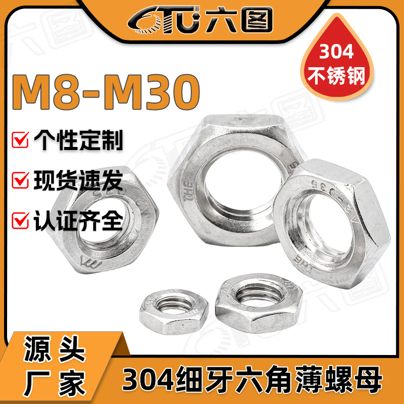 304ステンレス製の細い歯の薄いナットの外六角の細い歯の薄いナットの薄いナットの薄い形のねじ帽子m 6/m 8/M10