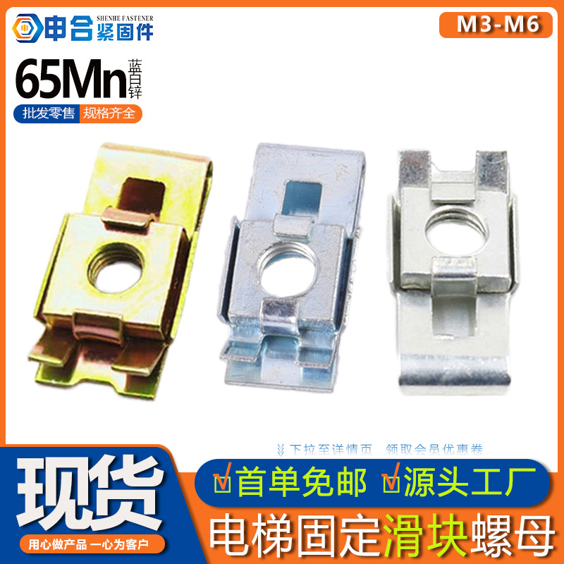 65Mnエレベータースライダークリップナット、亜鉛メッキU字型板ばねクリップナット、特殊形状クリップスプリングインサートナット