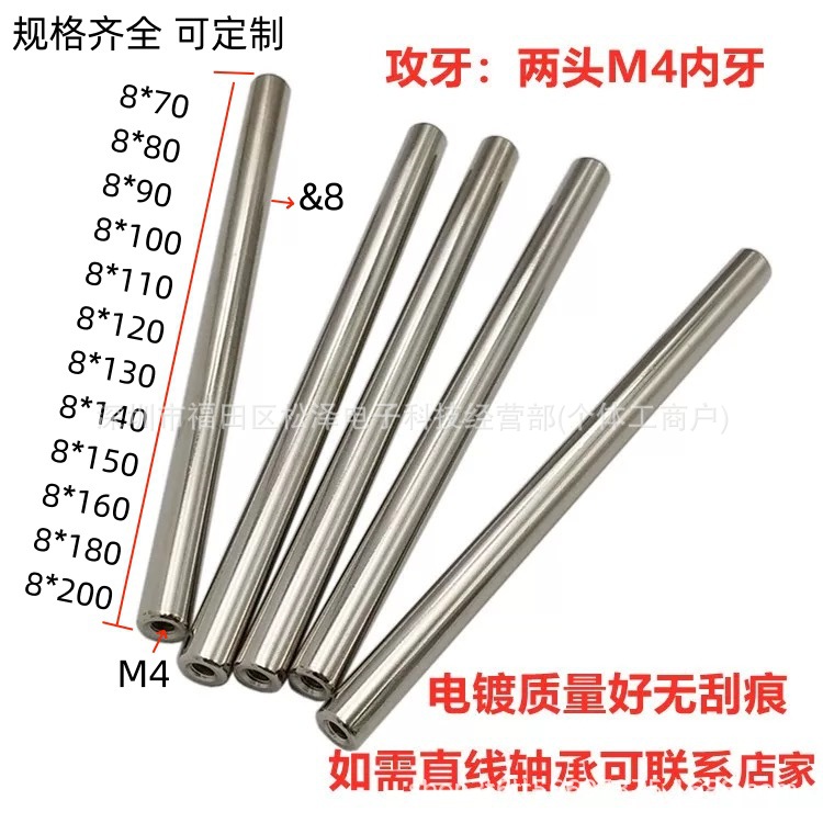 & 8*100mmベアリングガイド柱ガイドパイプ内歯M4メッキベアリング棒テスト治具ガイド柱ベアリング管