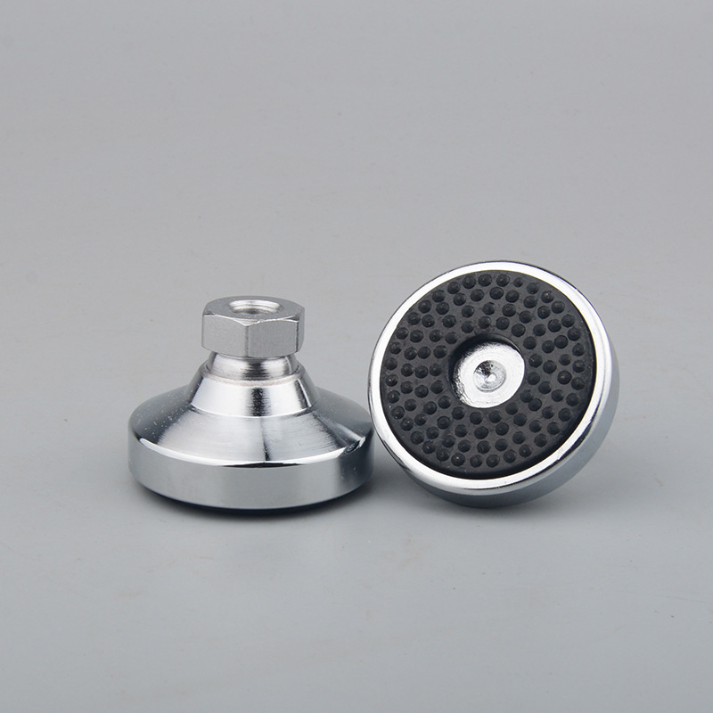 M10めねじ自在調節足、シャーシにゴムマット滑り止め支持足、炭素鋼クロムメッキ工作機械の足