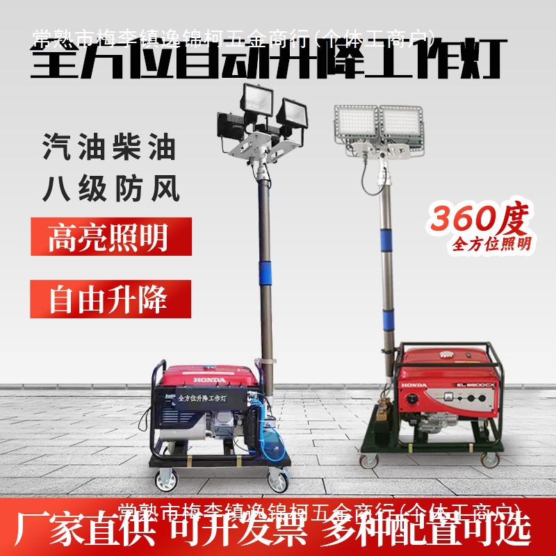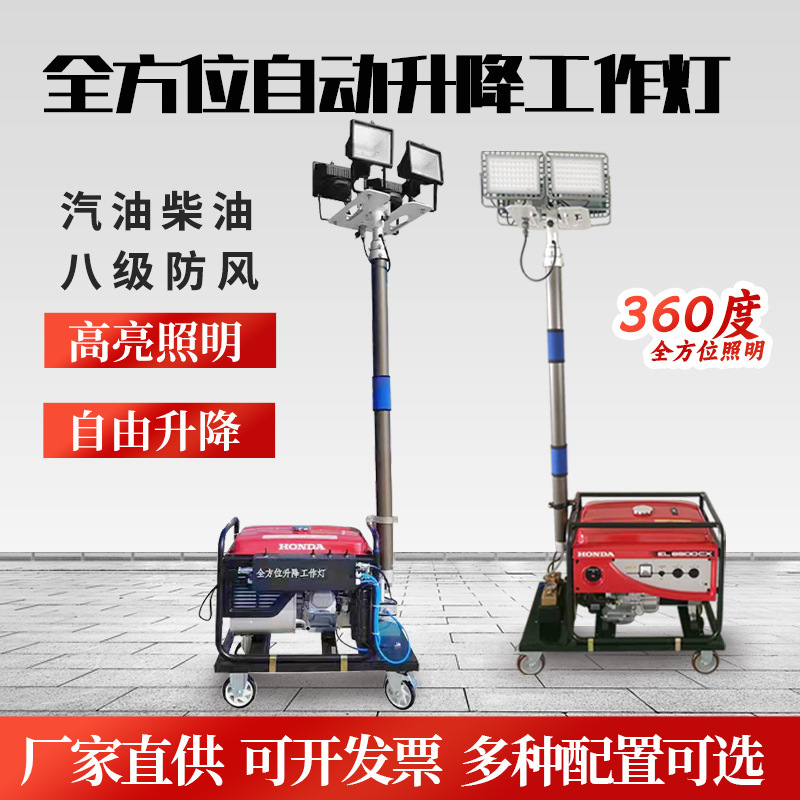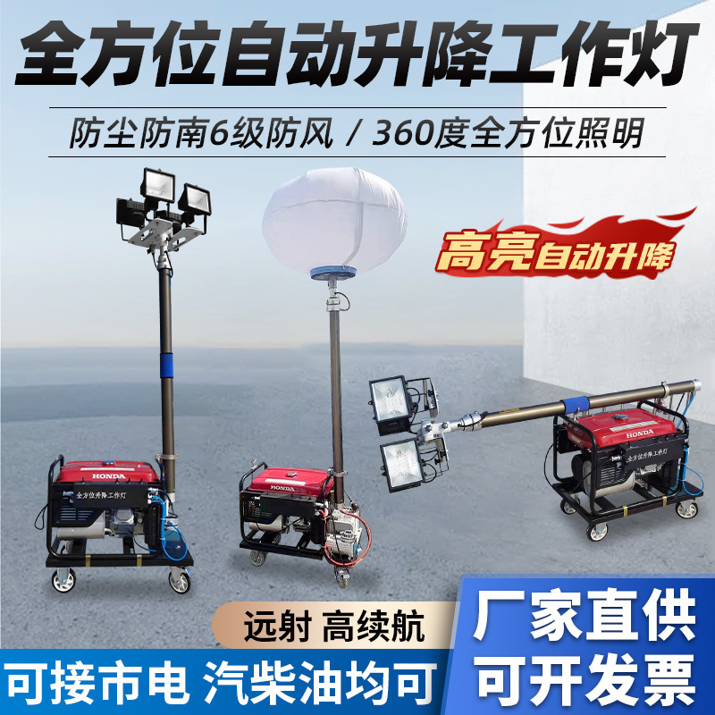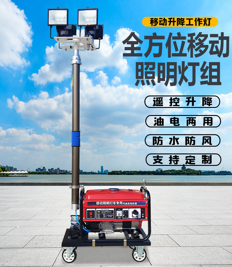 移動照明灯セットディーゼルリモコン全自動昇降緊急工事発電機オイル電気両用作業灯