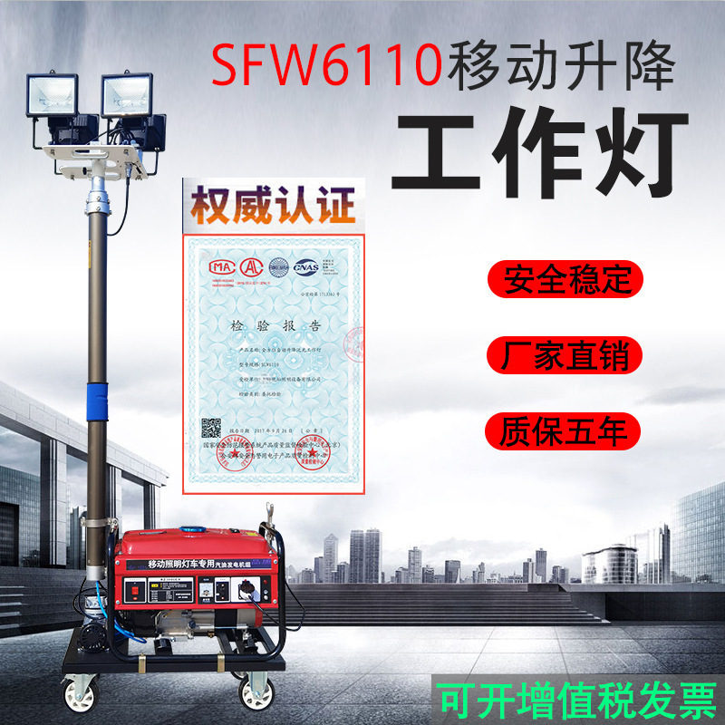 SFW6110Bモバイル自动リフト投光仕事ランプディーゼルガソリン発电応急照明ランプセットライト车アルミ