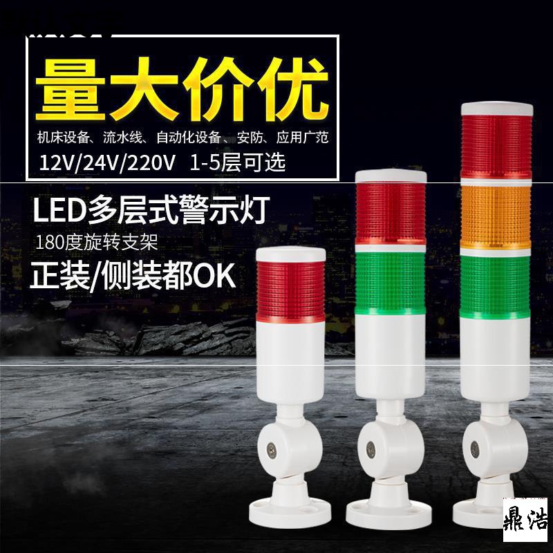 T01一体三色警報表示灯工作機械三色ランプled警告灯音光信号灯が24V輝いている